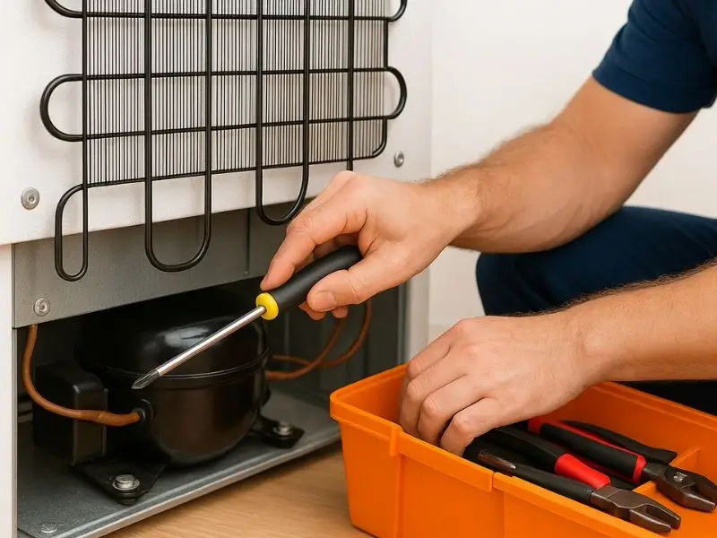 فحص شامل لـ ضاغط الثلاجة (الكمبروسر) مع إمكانية الإصلاح أو الاستبدال باستخدام قطع عالية الجودة.
